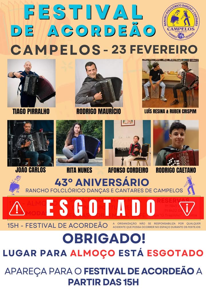 O Festival de Acordeão irá acontecer em Campelos no dia 23 de fevereiro 2025, está inserido no 43.º aniversário do Rancho Folclórico Danças e Cantares de Campelos.